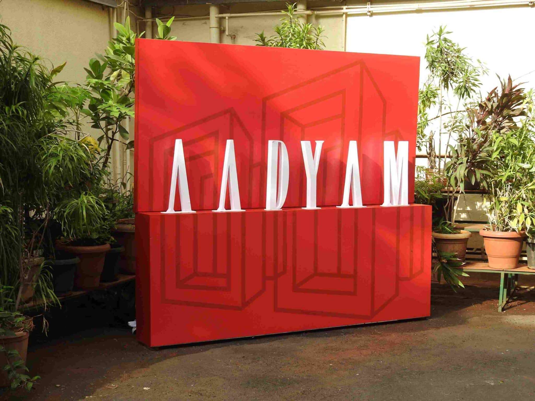 The Aadyam Theatre experience is not limited to just watching a play. All the experiences, from culinary to visual and entertainment, at an Aadyam show are curated around the world of the play the audience is about to watch. For example, when A Few Good Men was staged in 2019, the decor of the entire foyer of the venue was styled to resemble military barracks, there was a photo booth designed as a defence line, and audiences could purchase a glass of hot chocolate. When #SingIndiaSing was staged in 2018, there was a green-screen photo booth where audiences could make a memento of the show with them on a #SingIndiaSing magazine cover. There was also a karaoke booth.