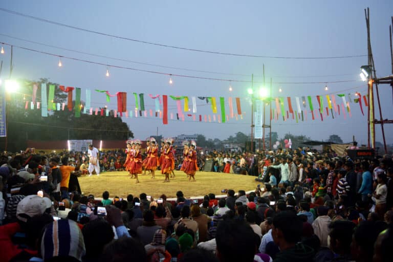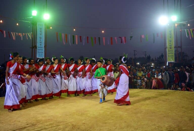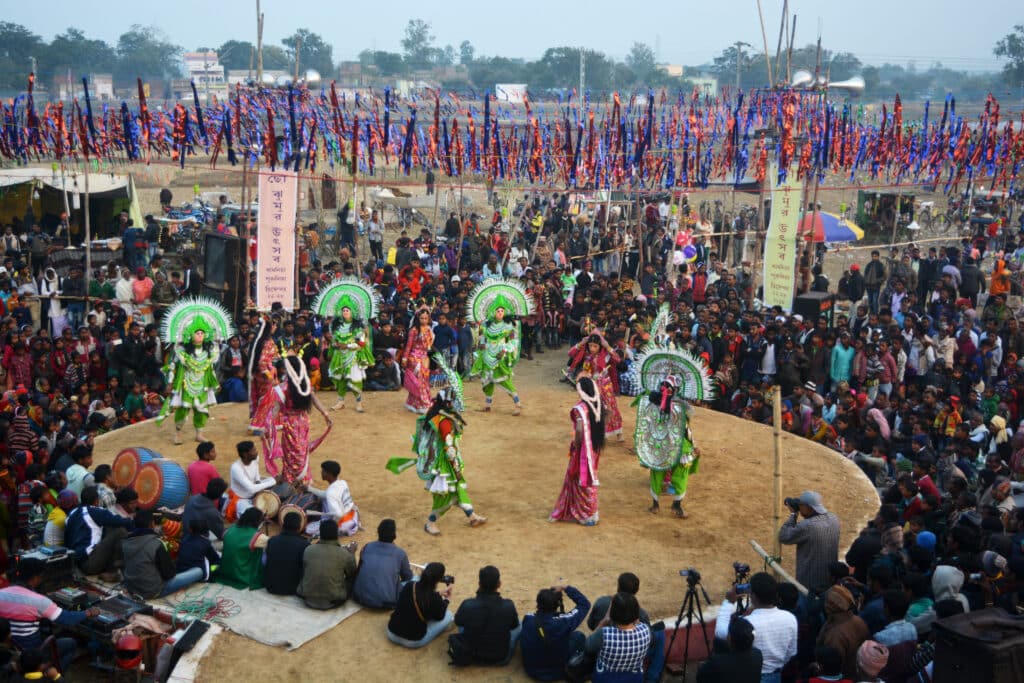 Launched in 2010, the Chau Jhumur Utsav celebrates and showcases two folk traditions of the state—Chau and Jhumur. Chau is a vibrant, colourful and vigorous form of dance drama representing mythological tales that propagate moral and ethical values. The dancers wear colourful and ornate masks that depict characters from the epic. Chau dance was inscribed in the UNESCO Representative List of Intangible Cultural Heritage of Humanity in 2010. Jhumur dance is a folk art form of the Chhotanagpur plateau covering several districts of West Bengal. The artform celebrates life and togetherness. During the festival, one can explore Purulia’s community-based heritage, interact with the artists, and have an immersive cultural experience.