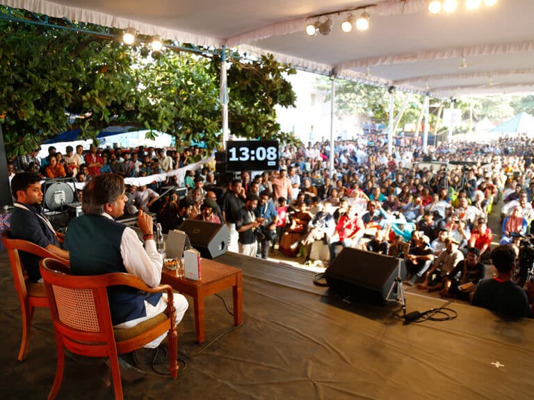 The Kerala Literature Festival is a grand celebration of "words, ideas, and [the] coming together of a global community". The events at the festival cover a vast array of interests ranging from history and architecture to science and cinema. One of the largest cultural gatherings in the country and India's second biggest literature festival, it has received over 3 lakh attendees in recent editions. A non-exclusive and non-aligned event, it is open to the public – registration is free. Noam Chomsky, Ramachandra Guha, TM Krishna, Arundhati Roy and Shobaa De are only some of the prominent personalities to have participated in past editions of the festival.