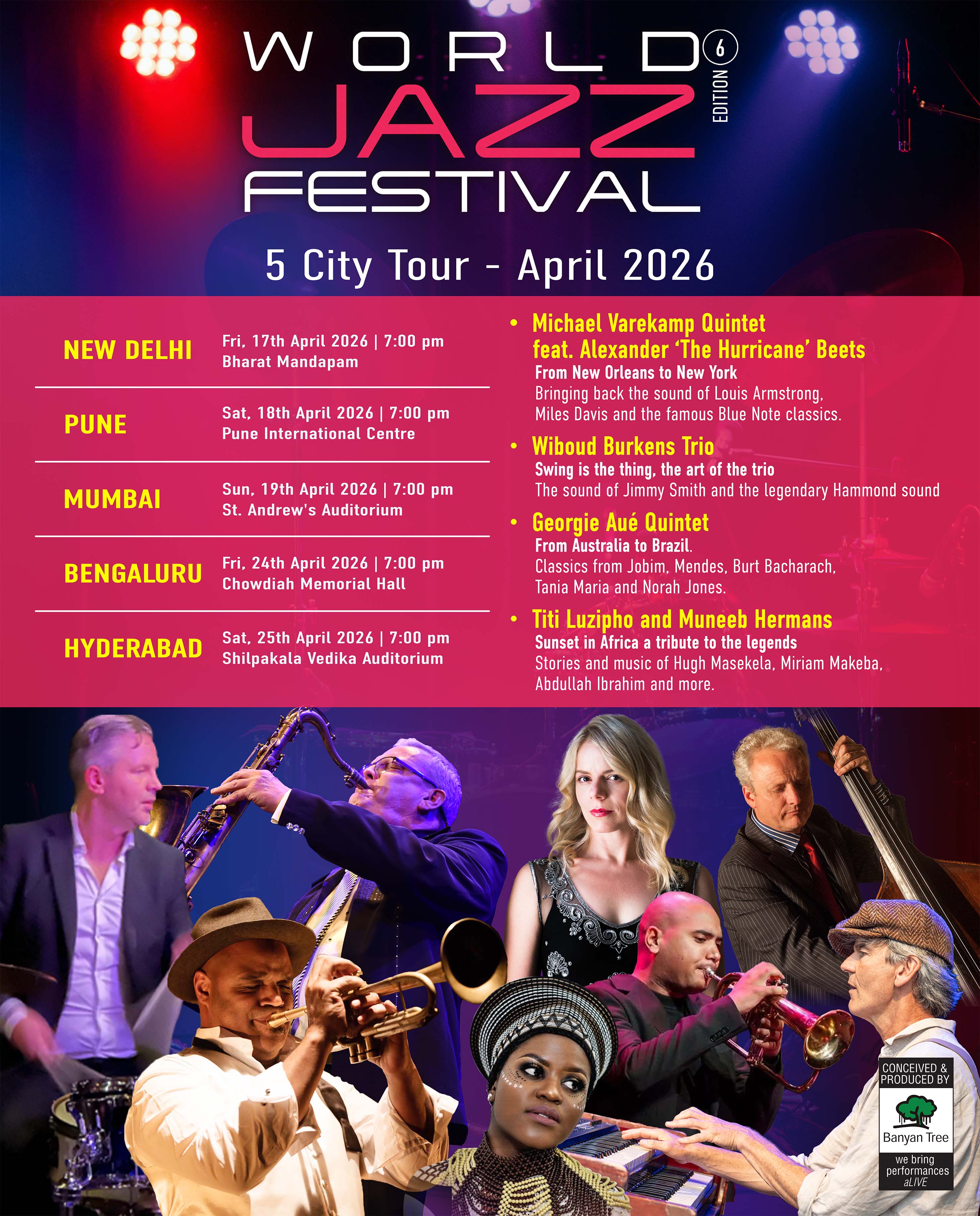 Banyan Tree’s ‘World Jazz Festival’ is now a well-established brand-with 5 successful editions that have travelled to 6 cities in India. Presented annually in partnership with Musicians Paradise from the Netherlands, the festival has become a significant platform presenting traditional styles of Jazz from multiple regions of the world on one common stage.
