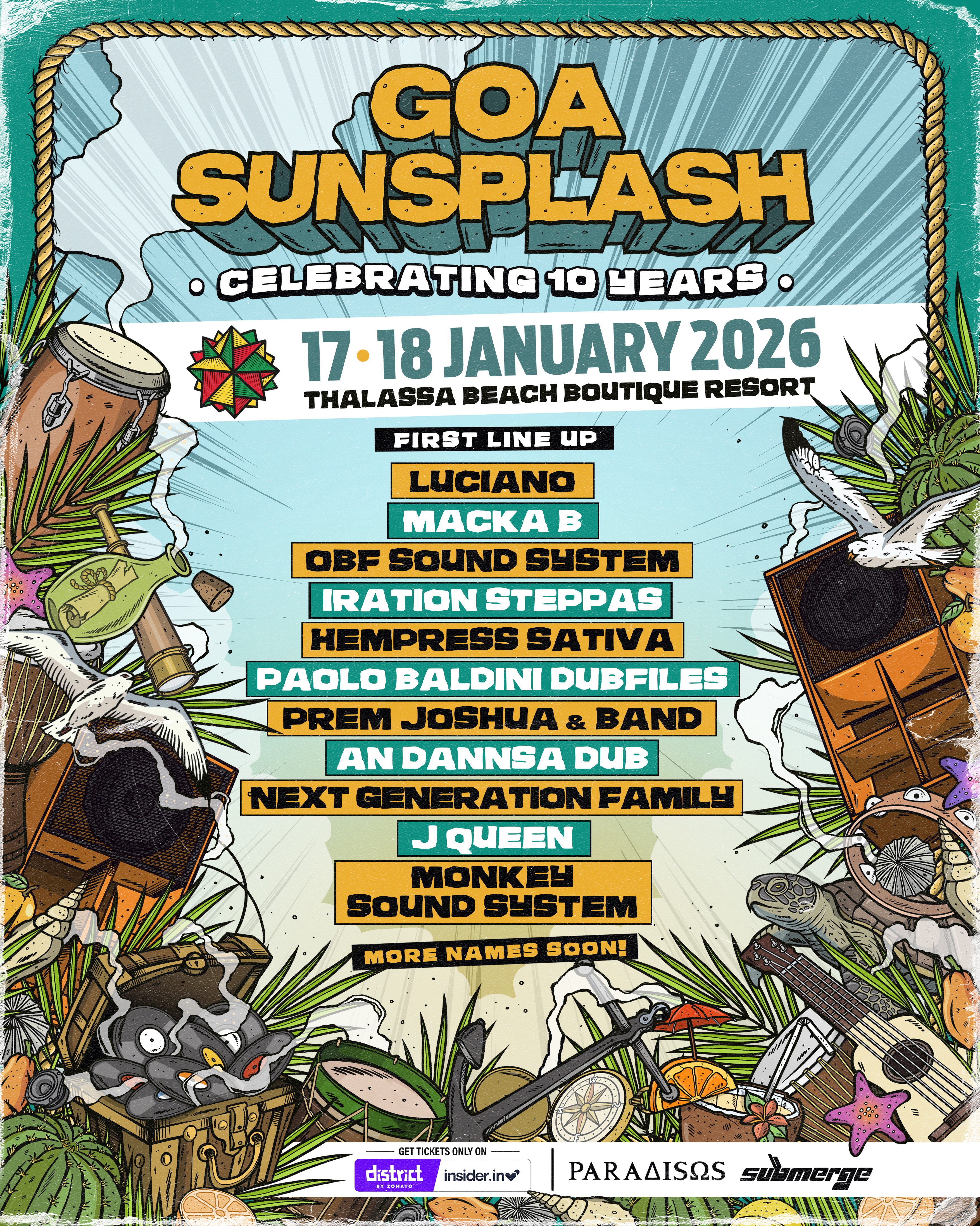 Join us in celebrating 10 years of Goa Sunsplash this January 2026, as we return with powerful sound systems, legendary artists, and all the vibes you've come to love.